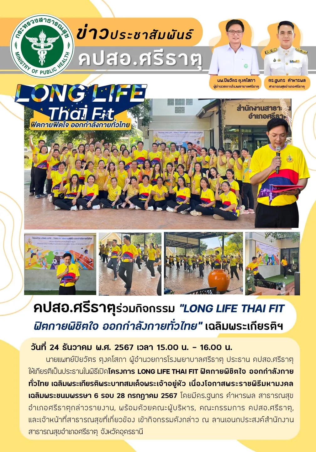 คปสอ.ศรีธาตุร่วมกิจกรรม “LONG LIFE THAI FITฟิตกายพิชิตใจ ออกกำลังกายทั่วไทย” เฉลิมพระเกียรติฯBy adminn / 25/12/2024