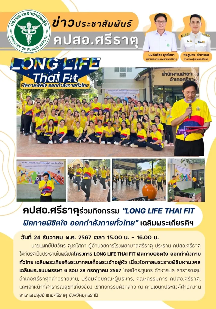 ข่าวสารทั่วไปคปสอ.ศรีธาตุร่วมกิจกรรม “LONG LIFE THAI FITฟิตกายพิชิตใจ ออกกำลังกายทั่วไทย” เฉลิมพระเกียรติฯ adminn / 25/12/2024